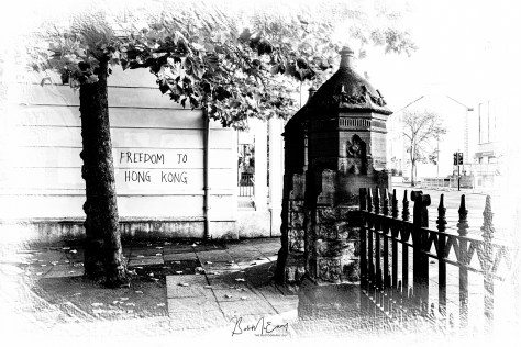 This gable wall in Belfast points us to events on the other side of the world, and indicates the desire of locals here to show solidarity with their fellow students there. There is a significant Chinese community in South Belfast, many of whom are students at the university, and many of them would have Hong Kong origins.