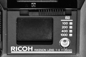 The lens is coated glass, in a three element arrangement, made by Ricoh, (They called it a Rikenon) with a focal length of 35mm and maximum aperture of f/4. It has variable aperture values, but the photographer has no control of this. It operates as a ‘shutter priority’ only camera, so the operator selects the shutter, and the camera sets the aperture, according to the Ricoh’s built-in metering system. I can’t see any way to override this, or any form of exposure compensation.