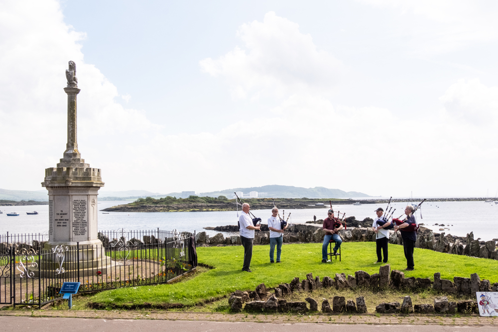 And, as an added attraction, sitting at the war memorial having a picnic lunch, we were entertained by the Millport ‘Grumpy Old Pipers!’