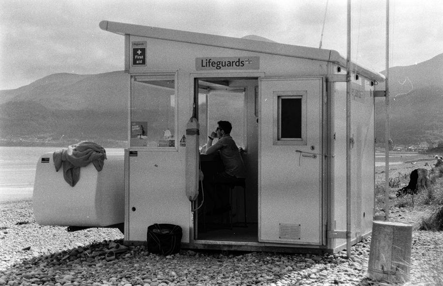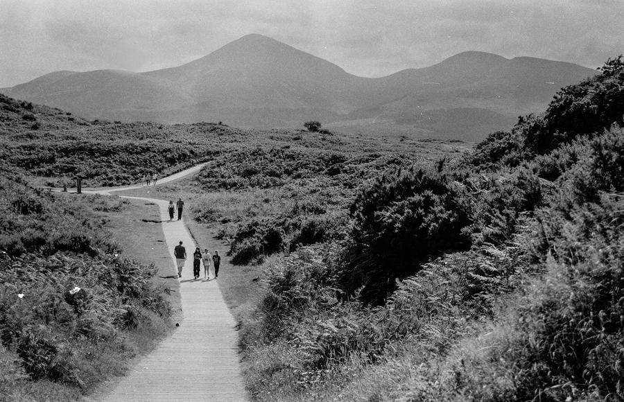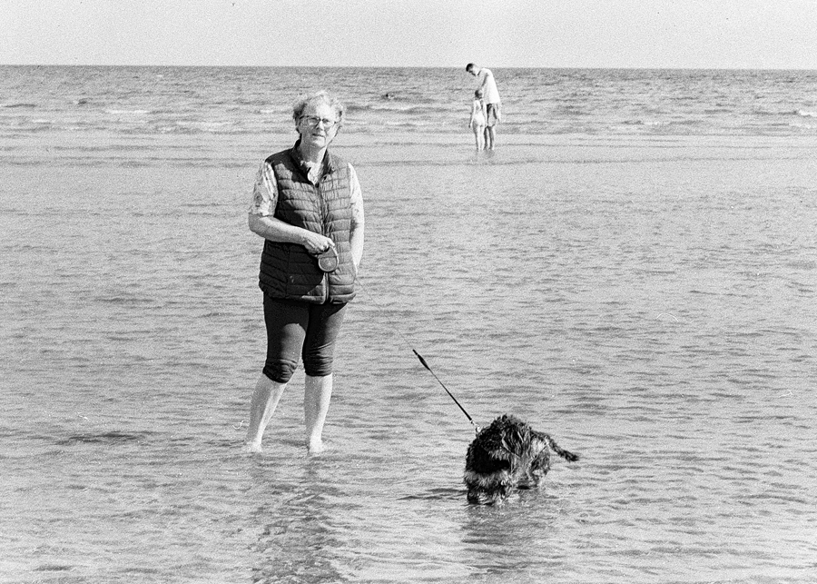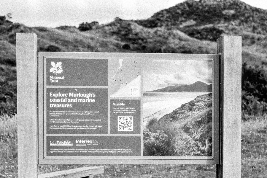 I’d a roll of Rollei RPX25 in the Nikon F100, so when (at last) a sunny day unfolded over Northern Ireland, I decided the light might be just bright enough for some ISO25 photography. It was Thursday, 1st August 2024, and nothing much was happening that was photo-worthy, so Janette and myself, and Lottie the wiry dachshund made our way to Murlough Bay, a Nature Reserve sandy dunes area on the east cost, owned and managed by The National Trust, situated between Newcastle (the Co.Down one – ‘Where the Mountains of Mourn Sweep Down to the Sea’) and Dundrum.
