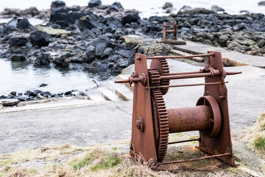 The fish were caught in the open sea using nets which were then hauled ashore using the (now-rusty) winches, which are still in place.