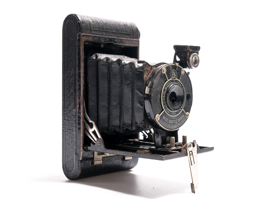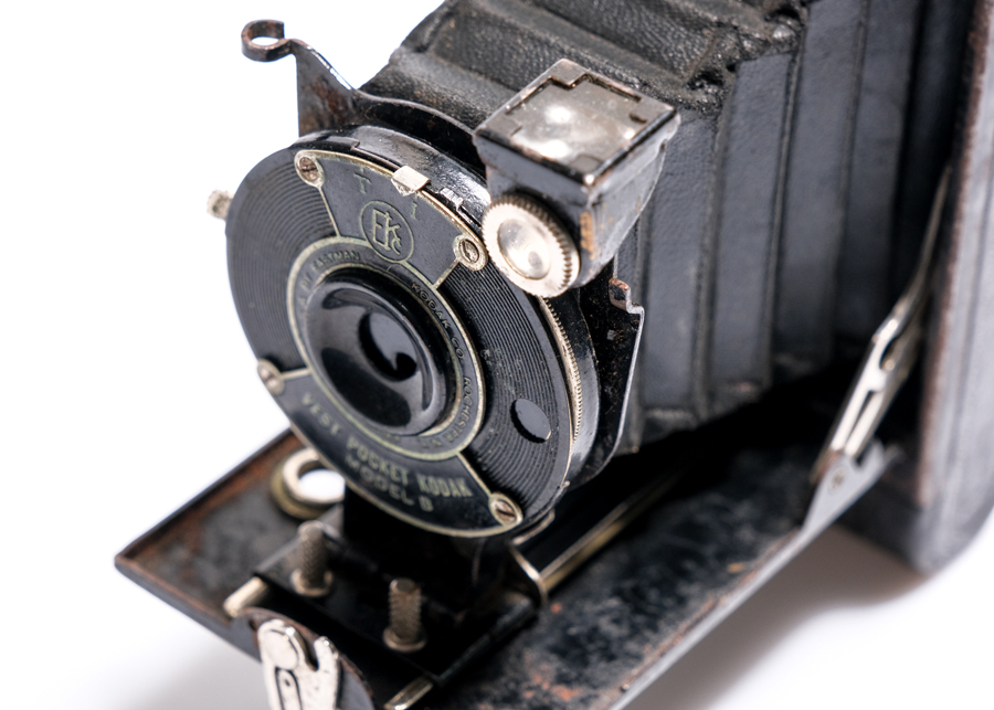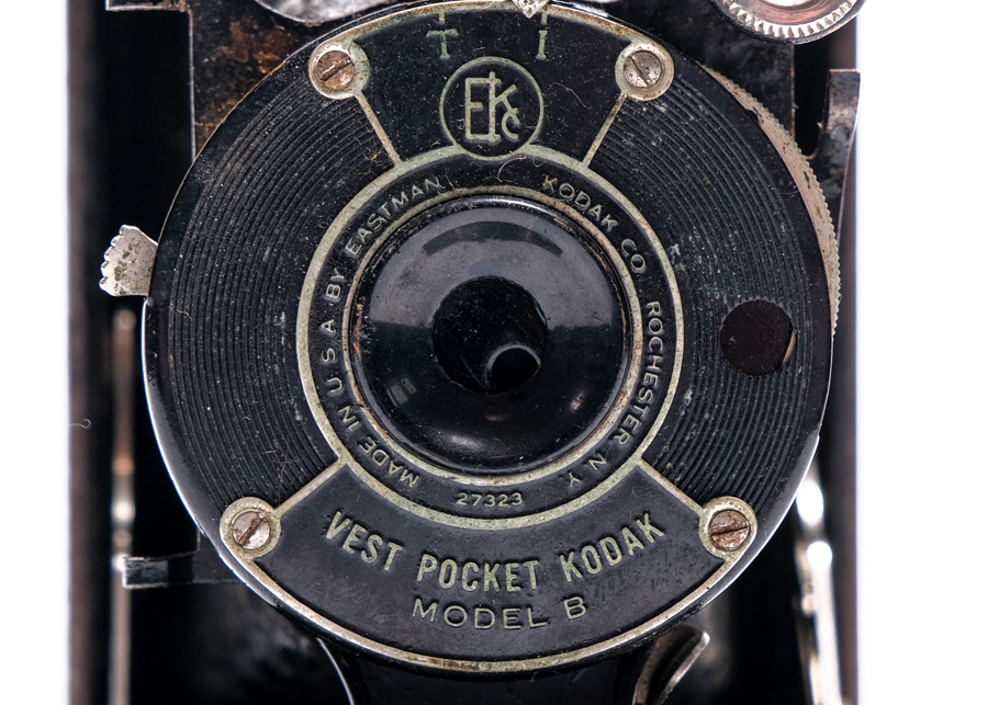 These tiny folding bed cameras had a unique feature – the “Autographic Back,” perhaps the first primitive version of a data-back! There was a slot in the back of the camera, that could be opened by the photographer, to allow them to write the date of exposure on the back of the film.