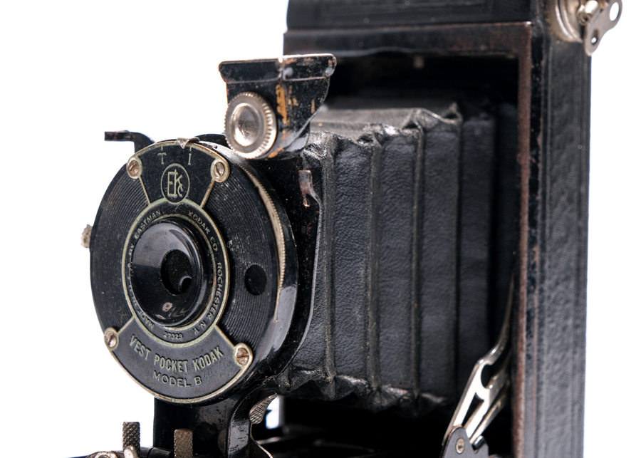These tiny folding bed cameras had a unique feature – the “Autographic Back,” perhaps the first primitive version of a data-back! There was a slot in the back of the camera, that could be opened by the photographer, to allow them to write the date of exposure on the back of the film.