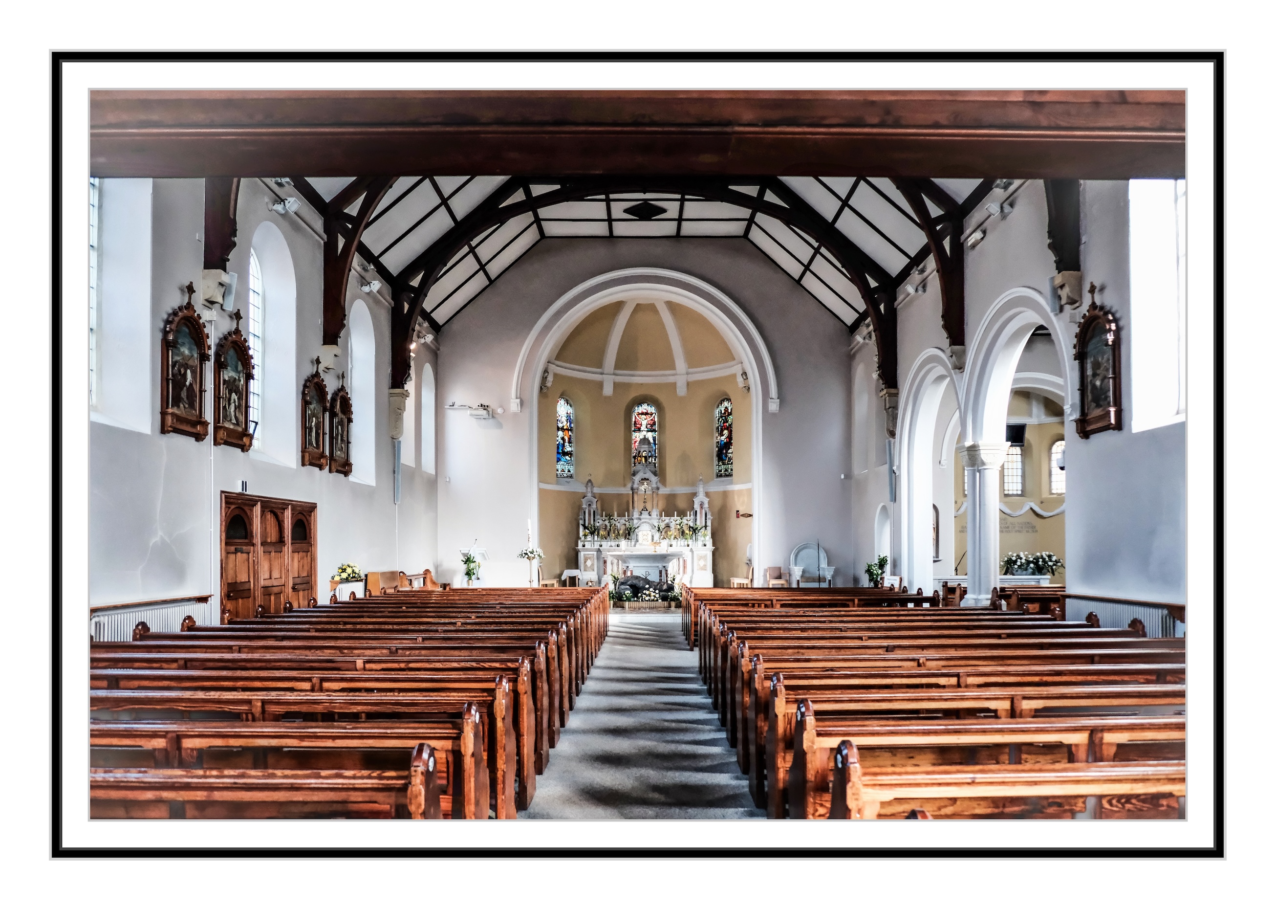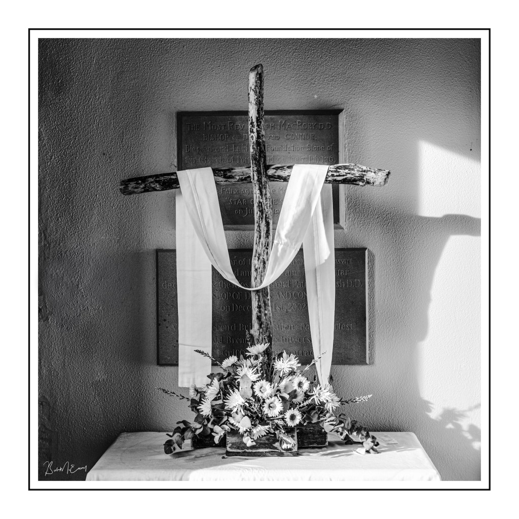 Out for a walk in the spring sunshine a few days ago I noticed that the doors of the local RC Church, here in Portstewart were open, and no services scheduled, so I ventured inside with the Fujifilm X-T50 camera.