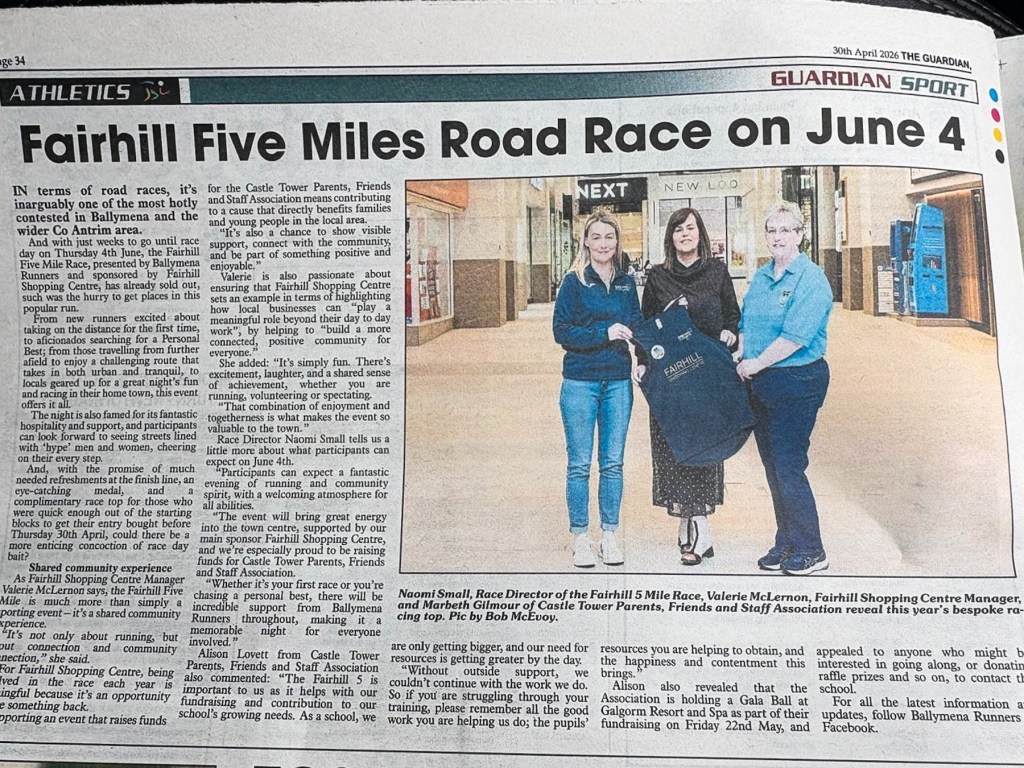 This is an annual race, sponsored by Fairhill Shopping Centre, and run by BRAC, the Ballymena Running and Athletics Club, – this year in aid of Castle Tower Parents, Friends and Staff Association,