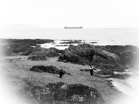 Throwing stones into the sea at Bangor Co. Down has been a youthful pleasure from time immortal. Being filmed doing it by a friend with a phone is a relatively new part of the experience