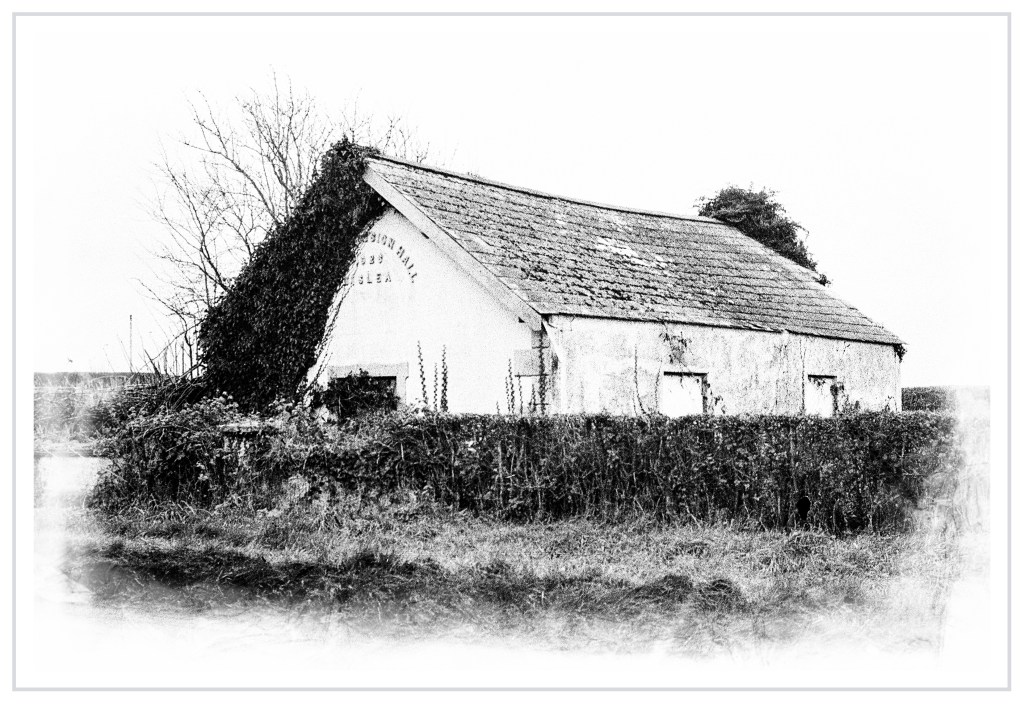 Lislea Mission Hall, in the townland of Lislea, between Portglenone and Kilrea. Now long abandoned and disused, it has been boarded up, and become overgrown and is slowly crumbling away. Once would have been a meeting place for worship to groups of local resident, farmers and their friends, and their children.