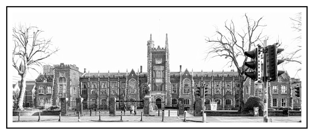 Rarely is there anywhere to park a car in the vicinity of Queen’s University, – parking spaces are few and hotly contested, but on 27th December 2023, I was driving through the area on return from an appointment in South Belfast, when to my surprise, I found an empty space, right beside the Students’ Union. I quickly parked, and stepped out with the Fujifilm X-T30 fitted with an 18-135mm zoom lens.