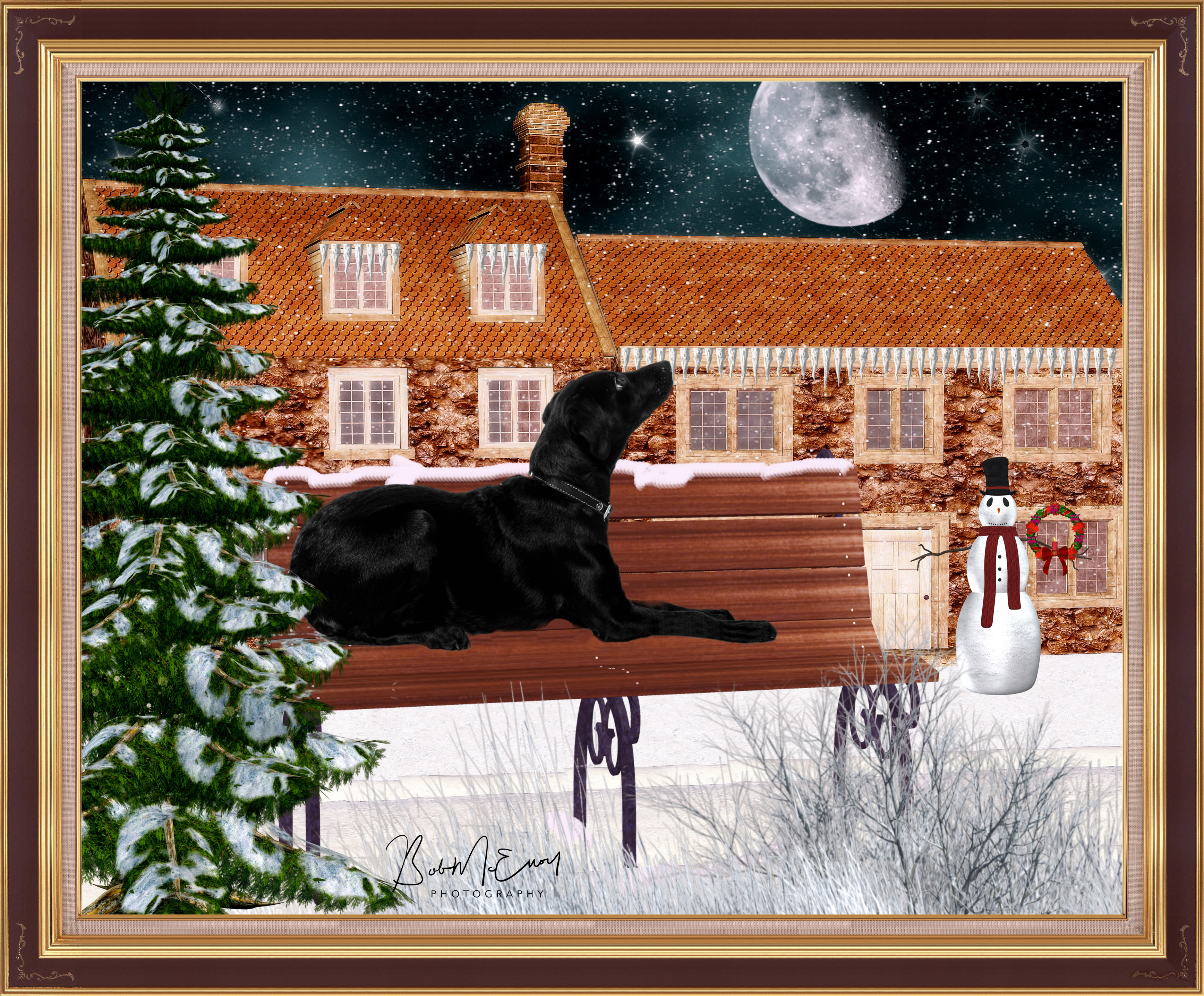 And of course, with Marley looking up at his mistress, with those lovely big eyes, I decided to put him out in the now, where he could sit on a bench and gaze at the moon…